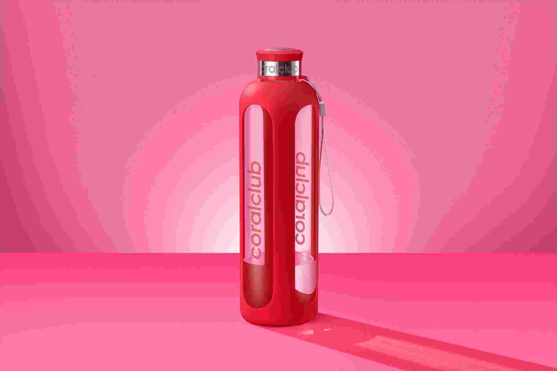Clear Water glass bottle, Living Coral